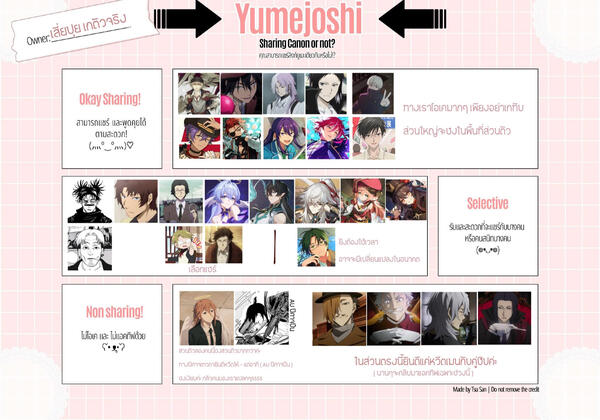 ในแอคจะมีเนื้อหาของ oc x canon , canon x oc แต่ทางเราเลือกเสพคู่ยูเมะและอาจจะมีบางคู่ที่ไม่สามารถแชร์ได้ค่ะ ขออภัยจริงๆ (〒﹏〒) แต่ส่วนใหญ่สามารถเสพคู่เดียวได้สามารถมาเมคเฟรนหรือพูดคุยได้นะคะ